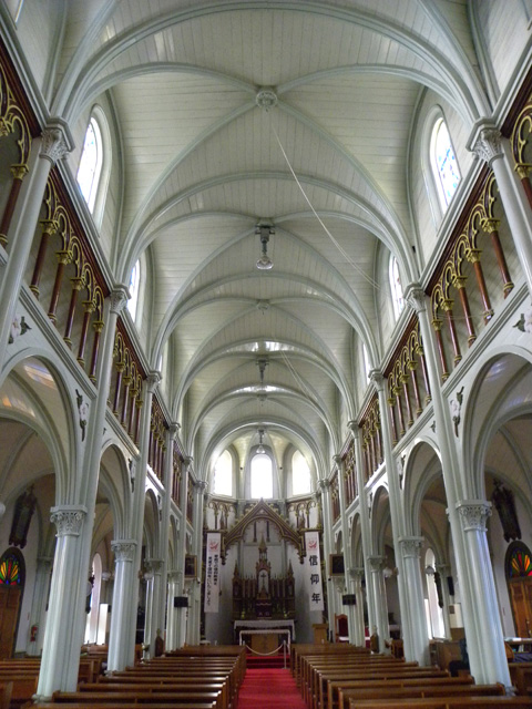 平戸市内からタクシーを拾い、田平天主堂に向かいます。再び本土に戻り、脇道に入って程なく聖堂が見えてきました。大きい。こんな場所と言っては失礼ですが、さほど人口もいない所で、これほどの規模の教会堂を作ってしまうなんて。先ずそれが率直な驚きです。