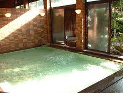 ![]() ■印象 浴室には大きな浴槽がある。窓が大きく、小さな中庭が見える。お湯はほんのわずか黄色みかかった透明なお湯だ。入ってみると熱すぎず、さっぱりとした感じのお湯だ。 泉質は含芒硝石弱食塩泉(アルカリ性単純泉)、源泉の温度は61.2度 だ。源泉は単独ではなく修善寺温泉混合泉である。 露天風呂はそれほど大きくはない。塀も高く、露天風呂に屋根があるので、開放感はもの足りない。 ![]() 浴室内に飲泉所がある。台座の上の丸い石の割れ目からお湯が湧き出ている。そこにある湯飲みで飲んでみると甘くやわらかい味がする。 休憩室にもポットに入った温泉がある。これでお茶を飲むとまろやかでうまい。胃腸に効果があるというのを実感した。 |