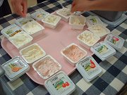 ここの目玉は色々なものをブレンドしたクリームチーズだ。直売所では試食コーナーに人だかりができている。特にうまかったのはガーリックをブレンドしたチーズだ。クラッカーに載せて試食してすぐに気に入った。