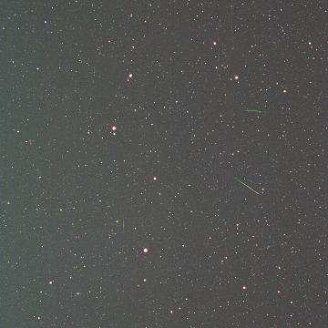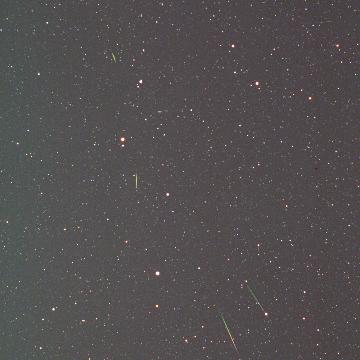 画像の放射点は、中央の少し左上です。ここから放射状に流星が発生しています。これは偶然ですが、なにやら右方向に明るいものが多く見られました。オリジナル画像では、この4コマはすべて20個程度は写っているようです。しかし、暗いものが多く、詳しく紹介できません。