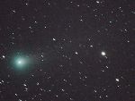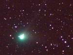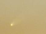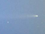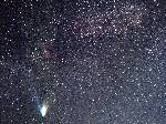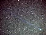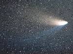 彗星は、ある日突然私たちの前に現れ美しい姿を見せ、あっという間に去っていく魅力的な天体です。この彗星の正体は、汚れた雪だるま、その大きさは、一般的に数キロメ−トルです。太陽から遠いとき、彗星はこのままの状態で、地球からはほとんど見えません。しかし、太陽に接近すると、太陽の熱により、汚れた雪だるまが解け始め、青緑色をしたコマをともないます。そして、ますます太陽に接近すると、彗星独特の尾が発生します。尾は、青く見えるイオンの尾と、白く見えるチリの尾があります。尾の見え方や出かたは、彗星の位置や種類によって様々です。