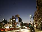 街に沈む三日月と
