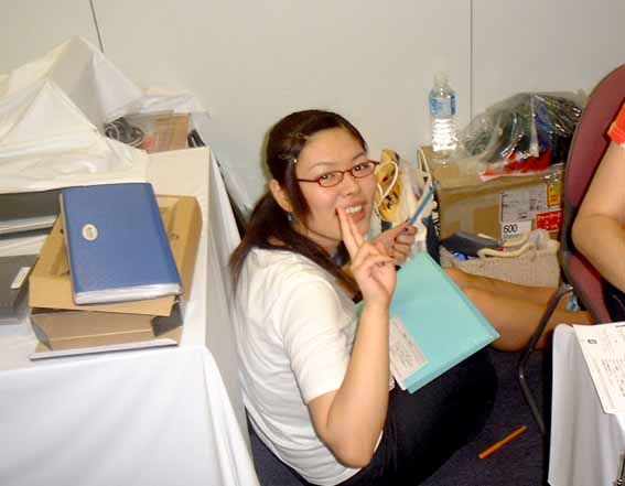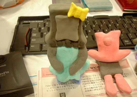 | ブースの片隅でビラ作りに励む美人秘書 | 美人秘書作パーム人形その1(どうも置き方がおかしいようです。) |