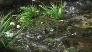 [Cold Open] [Camera] Rippling water flowing past mossy stones. We hear the gentle sound of the stream, as well as birdsong. Slowly, the camera pulls back and pans along the scene - a small river surrounded by greenery. As we pull back further, we realize that the camera is shooting out a window. The interior of the room begins to become visible, and as it does, the sounds change; the ripple of the river fades, and a new sound becomes audible - the faint sound of a sharp blade cutting through wood. We are in David's workshop, and he is carving. We watch.