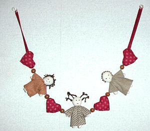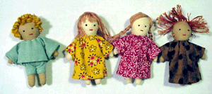![]() 久しぶりにお人形を作りました。子どもの頃、洋裁をする母のそばで、小さな端切れをもらって作ったのを思い出しながら、久々に楽しいひとときを過ごしました。 いたって簡単な型紙です。周囲をぐるっと縫い、ピンセットで裏返します。服や髪形はアイデア次第、小さな子どもの髪形がヒントです。おっとりすました子、勝ち気のいたずらっ子…。目や口、髪形のちょっとした工夫でいろいろな表情が出て、作るたびに心が躍ります。小さくて短時間でできるので、つい、次々に作ってしまいました |