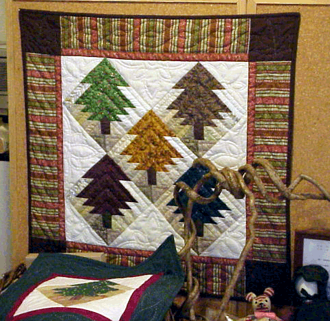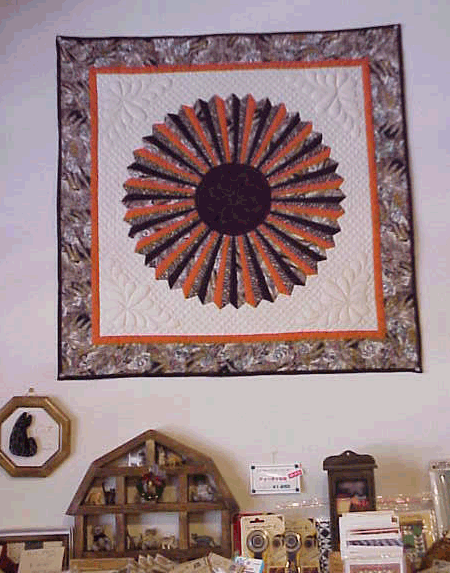 四隅にトラプントを配したタペストリーです。本職は建築パースを描かれる彼女は私の古くからの友人ですが、最近パッチワークを始め、すっかり虜になっています。パッチワークを教えられるぐらいになりたいと、つぎつぎに作品を制作しています。