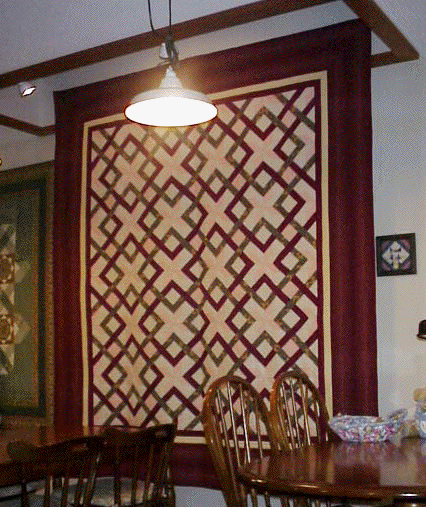 お嬢さんのお嫁入りに作られたベッドカバーは、Wサイズの大きなもの、今はかわいいお孫さんにメロメロのおばあちゃんです。つぎの大作はブルーの美しいベッドカバーで、ご主人のとか。楽しみです。
