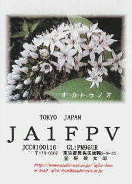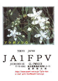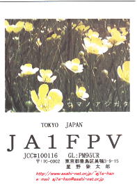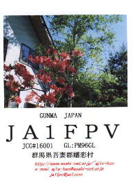 再開局から3年間ぐらいは、ハムログを利用して印刷していました。 月ごとにデザインを変えて、といっても、花の写真などを差し替えるだけですけど。 中には、旧碓井峠の熊野神社を写したもののように一枚しか発行しなかったカードもありました。(JO1ZKV宛てのみ)