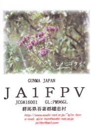 | 00/12/23 | 17:07J | JP2GRJ/2 | 7 | A3J | 59 | 59 | 愛知県愛知郡長久手町 | 山荘 | |