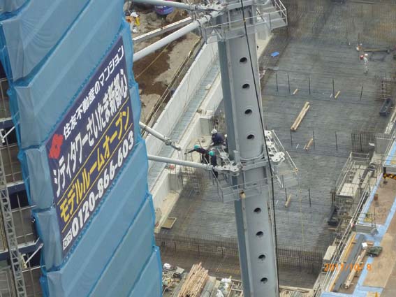 固定クレーン解体の様子です。