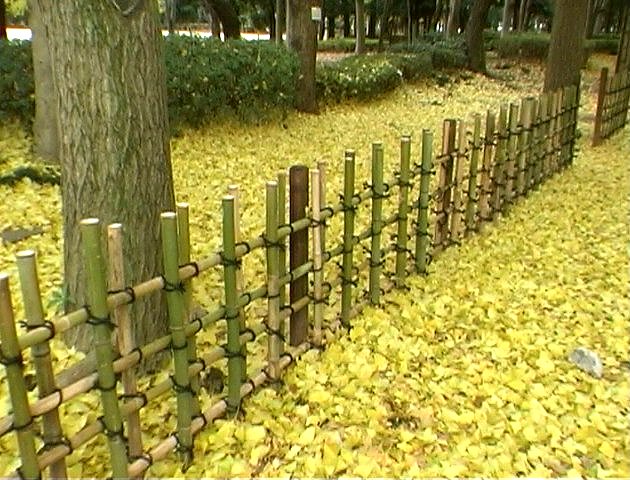 洞峰公園(つくば市二の宮)の紅葉。イチョウのじゅうたんと化す。 (1998年12月7日撮影)