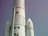 | つくばエキスポセンターロケット | 横浜博の展示を移築。高さ約50メートル、重さ約130トンの実物大模型。ライトアップされる |