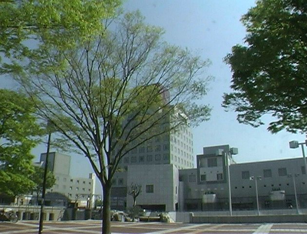 つくばセンタービル(つくば市吾妻1丁目)つくばセ ンタービル前の広場は、ケヤキの新緑がきれいです。(5月5日撮影)