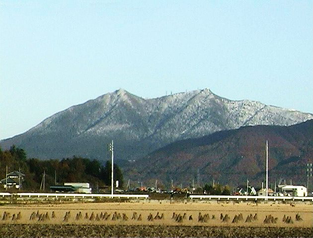 筑波山の初冠雪。(1998年12月撮影)