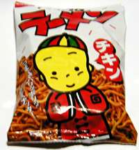 | これは幼少のころからあるなじみの深いお菓子です。チキンラーメンを砕いてお菓子風に加工したとでも言いましょうか。人には言わないけど実は良く食べますという方がぽつぽついますねぇ。さて、当初はビニール袋のパッケージで\20と\50のパッケージだった物がアルミパックに替わり、そして各種バリエーションが生まれました。これはその正統後継製品といえます。この手のラーメン系のお菓子は古くは「ラーメンバー」「ラーメンスナック」、さらには現役の「ラーメンババー」「ラーメンジジー」「ラーメン屋さん太郎」などの派生があります。その中で生え抜きのお菓子と言えます。姉妹品としてミニカップラーメンおよび焼きそばもありました。今あるかは不明ですが・・・。当初は点数を集めてプレゼントに応募などいう企画がありましたが、応募したことはないんですね。すてちゃうんですよ、ついつい(笑)。さてさて、バリエーションのはなしとなりますが、これがまた結構あるようです。「チキン」とともに「みそ」と「とんこつ」が出ました。その後スパイシーなやつやら、北海道では札幌ラーメン系があったり、おつまみむけにピーナツと「柿ピー」ばりの商品まであります。全国探すとかなりあるのではないでしょうか・・・。多大なファミリー製品なのではないかとおもう今日このごろ。 |