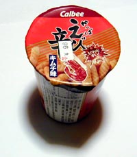 辛いキムチ味のかっぱえびせんです。お薦めです。袋じゃないのがこのえびせん兄弟では異質ですね(笑)。よく食べます。辛いのが好きな人は必ずはまるでしょう。パカッと開けて、がばっと食べましょう。飲み物はお茶がいいかな?結構牛乳も合いますよ。しーはーしながらほおばって食べてください。