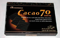 どことなく生チョコ系の味わいの甘さ控えめのチョコレートです。ちょうどおやつにコーヒーや紅茶とともに食べたいお菓子ですね。もちろんブラックで。ひとつひとつが約3センチ四方でサイズもお手ごろです。一人で食べるにはちょっと多いので皆様でどうぞ。しかし、なぜゆえ70なのだろうか・・・。パッケージの隅々までチェックしても判りませんでした。