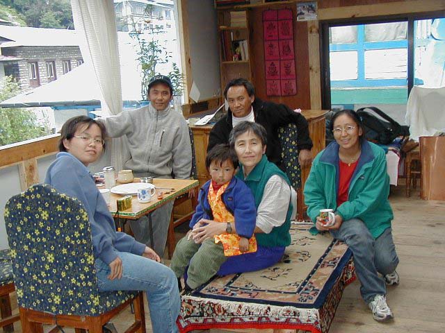 memer chu and family およそ6年ぶりにNepalへ行ってきました。 ついでに”偵察”と、欲張っていましたが、登山しにいったんじゃないです。 C.ロレンツ風に云うと、”人に会う”、のが目的でした。 なかにはみなさんのご存知の方もいますので、彼らの近況も含めて、 最近のトレッキングに関すること、王室の不幸な事件やマオイストの動静などについて、 私自身の気付いたことをメモします。 興味のない段はどうぞ読み飛ばしてください。 (ペンバとかニマとか、みなさんのご存知ない名前が出てきますが、私たちとの関係は、ベリ~ロ ングスト~リ~になるので、別の機会に少しずつってことで、ご容赦ください) 1.トレッキング・パーミッション ・アンナプルナ、クンブ、ランタンについてはトレッキングパーミットが不要になっています。 また、国立公園の入園料(Rs.1000)はカトマンズで払えます。この場合は、レシートを持っ て入園するときに見せて、アーミーのチェックを受けます。また入園料は実際に入園するときに払っ てもOKです。 前記3エリア以外にエントリーするときは、許可申請が必要です。 ※Rs.1は¥1.8くらいでした 2.雨季のカトマンズ~ルクラ間フライト ・ロシア製25人乗りヘリは廃止されています。これは荷物輸送専用機になりました。 従って、従来通り、すべて14人乗りのツインオッターです。 値段が上がって、往復1人US$180。 ここは定期便ですので、雨季でも就航しています。 毎朝、5~10フライトは確保されていますが、ルクラの雲底高度が上がるのを確認してから、テ イクオフしていきますので、乗客は、エアポートで、場合によってはかなり待たされます。 ※シャンボチェを使っていたピラタスポーター機は、最後の1機が昨秋墜落してしまいました。現 在シャンボチェを使えるのは、チャーター・ヘリのみです。 3.雨季のトレッキング 今回の私たち(私と妻と長女)の行程は下記の通りです。 ・8/2、成田->香港(キャセイ航空)、->カトマンズ(ロイヤルネパール航空) ※このルートでは、成田をAM11:00に出て、カトマンズには同日の18:35に着きます。 つまり、日本から1日で行けると云うことです。ご存知のように従来は概ねバンコックで1泊させ られました。 ・8/3,カトマンズ->ルクラ(2800m)、昼食をとってから歩き始め、この日は、モンジョ泊。 ・8/4、->ナムチェ(3400m)->シャンボチェ-(3800m)>ナムチェ泊 ・8/5、->タ-メ・ゴンパ(4000m)>ナムチェ泊 ・8/6、->ルクラ泊 ・8/7、ルクラ->カトマンズ ・8/8、カトマンズからランタンへ飛ぶためヘリをチャーター、AM6:00~11:00まで エアポートで待ち。 ※結局、この日から、帰国予定の11日朝まで、毎朝、天候の回復待ちで、ついに断念しました。 ヘリは飛べる条件でしたが、厚い雲が、私の目的としている山を覆っていたためです。 ・8/11、カトマンズ->関空 ※このフライトは23:45出発の夜行便です。従って、8/11はフルに使えました。上海で給 油がありますが、関空には翌日の11:00に着きました。 エアチケットは往復で¥114,000/人でした。 ※この時季は比較的暖かいので、4000m程度までなら、軽装でOKです。雨は、夜間から明け 方にかけて降りますが、日中は雲量3~5程度で概ね晴れています。私は、20代にクンブで雨季 をマルマル越したことがありますが、雨具を使った日は極くわずかです。また、94年に娘たちと ゴーキョへやはり8月に行っていますが、雨具は使っていません。6000m以上の山は、積乱雲 に覆われて、見えるチャンスは非常にすくないですが、日差しは強く、暑さ対策は必要です。幸運 なことに私たちはモンスーンの雪で真っ白になったエベレストとローツェの南壁、タムセルク、ク スムカングルを目にすることができました。高山植物はそこかしこで咲いていますが、ブル-ポピ -は、4500mよりも上へ行かないとあまり見られません。以前にクムジュンの3700m付近 で見つけたことがありますが、このようなことはたいへん希だと思います。 ※ランタンの計画は天候によって次の行程案を考えていました。 ①ヘリで飛んで、ランタン谷のA峰(目的の山)の周辺をフライト、キャンジンゴンパでおろしてもらう。 その後、2日歩いてシャブルベンシでランクルに拾ってもらい、カトマンズに戻る。 因みにランクルのチャータ料はRs.8000 ②時間がなくなった場合、ヘリでA峰直下でおろしてもらい、2時間歩き回る時間をもらい、再びヘ リでカトマンズへ戻る。(この2時間はペンバがうまくやってくれてサービス) 4.メラ遠征で、サーダーをやってくれたギャルゼンの近況 USAニューヨーク、マンハッタンまで車で15分くらいのところで、住み込み大工さんをやっているそうです。 Nepalへ帰る気は当分ないようです。 5.ペンバ近況 見事なヘリパイロットになりました。 昨シーズンまではフィッシュ・エアーで働いていましたが、現在は、ネパールで最初にできたヘリ 会社、エアー・ダイナスティに移りました。病人を助け出したり、僻地にDr.を運んだり、火急 の薬品空輸などにがんばっ