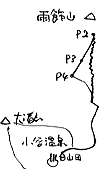 96年3月24日(日)に頚城(長野・新潟県境)の雨飾山に行って来ました。 24日朝6時半に小谷温泉山田旅館を出発。、車で、乙見山峠へ。空は快晴。空気は冷え きっている。が、春の気配がする。そういえば、今朝は小鳥のさえずりで目が覚めたっけ。 歩き始めるとすぐに暑くなり、衣類の調節が忙しい。 北田紘一編の『日本スキーツアー・ ルート集』の記事を参考に、ワセ沢をつめてP4とP3の間の鞍部をめざす。急斜面では、 固く凍った雪面の上に5cm位のサラサラ雪が乗っている。表面の雪にはシールが効かず、 その下の氷にはエッジがたたずで、そうこうする内に表層全体が流れそうになるので、だま しだまし登るのが結構難しい。 P4-P3間の稜線の雪庇の低い箇所を越える(9時ご ろ)。そこには、兎の足跡がいくつも通っていた。 P3からの登りではツボ足に切り替え る。幸い、尾根上に先行者のワカンの足跡があり、アイゼンなしでも楽に登れたが、見上げ るP2は、白い塔のようにそそり立っていて、やっぱりアイゼンを用意しておくほうが安全 だったと反省。 快晴無風の中、眼下の大渚山や、向こうの後立山連峰を眺めながら、暑い暑いとぼやきな がら登る。 P2で登りは終了(11時頃)。前後して登った他のパーティーと雑談した り、雨飾山頂に至る岩壁をアタック中の3人パーティーの姿を遠くに眺めながら昼食。 下りは、途中まで登路に沿って滑るが、重く締まった雪質が結構滑りにくい。1700m 付近から、登路の尾根の東側に広がる無樹林斜面に突入。前述のような状態なので、急なと ころでは小規模ながら表層が流れていく。他のパーティーのみなさんの顰蹙をかっていたか もしれない。 もったいないと思いながらも、あっと言う間に真っ白な斜面を標高差400m下り、台地 状の部分に着く。ここからは、ブナ林の中を斜面を選びながら、標高差150m下って奥ワ セ沢出合いの河原に到着。 林道まで、斜登行や逆八の字で上がるが、疲れた足にはこれがつらい。ウロコ付きの板に すれば良かったかなと思う。林道も傾斜が緩く、新雪ならば「下りラッセル」となって結構 つらそうだ。汗だらけで車に到着(1時半頃)。当然のように、旅館にもどって汗を流し、 至福のひとときを過ごす。宿で食べさせてもらった、「おから入りの温泉饅頭」は、まさに 絶品だった。 (KODAMA RYUJI)