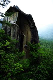1997-6-21 KIM ちゅう、汽車、安田 日帰りで小川山に遊ぶ。途中用事があって、昼過ぎに回り目平。左岸スラブにいくと、 ちゅう、安田がのぼっていて、きょうはモチなくもうおわりだという。ちょとまて、と ブラックアンドホワイト5.9とジャーマンスープレックス10aをのぼる。前者は楽勝、後 者はワンテンはいる。ま、スラブは水ものだから、気にしない。きょうは、いまいちズ クがないということで、お開き。こんな日もある。おもえば小川山にきて雨が降って登 らずにかえることもよくあるのだから。 それにしても左岸スラブは年ごとにつるつるしてくるような気がする。グレードもあが っているのではないか。その分靴もよくはなっているのだが。それにしても何と短いル ートであることよ。 ブラックアンドホワイトの左側のルート(名前は失念)も面白いよ。ちょんぼ棒を使い たいくらい一本目が遠いが、ガバをつかうので行けるとおもう。