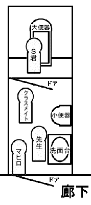 先生とS君の交渉が繰り広げられているが、我々はトイレの外に出されてしまった為に、その声を聞き取る事が出来ない。