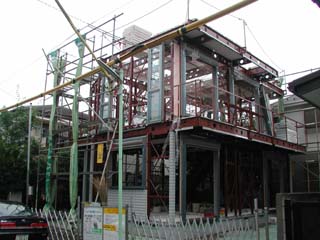 夕方に戻ってみたら1階部分が出来上がっていました.あまりの速さにびっくり. |