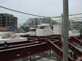 | クレーンの正確な操作と組み立てる二人のチームワークは見学する価値あり. |