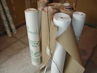 クロス工事は前段階として,石膏ボードの凹凸を埋める作業をしています.普通のビニールクロスの場合は2回,ヘーベルハウスのクロスの場合は3回この作業を繰り返してからクロスをはるとのことです.この作業の善し悪しによって仕上がりの奇麗さに差が出てくるそうです.