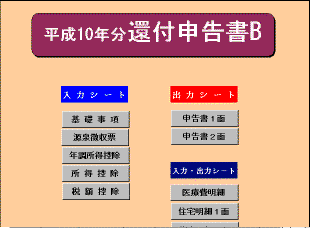 EXCEL還付申告H10は平成10年分の「給与所得者の還付申告書」を作成するEXCEL97のテンプレートです。
