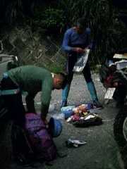そして、そのあとの打ち上げ、一杯やるところはなかなか決まらず、二転三転して、かなりの時間が経って、世附川までもどり、そこで、屋根はあるものの風雨の中での宴会がモヤモヤと続くのでした。