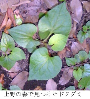 賈さんはこの流水のサンプルと途中の畑に置かせてもらっていた雨水を集める装置から採った天水のサンプルを時々取りに出かけた。そんなある日、三徳の山道でドクダミが群生しているのを見つけた。