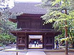 茅葺きの総門をくぐると、運慶作の仁王像を配した山門があります。