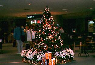 出発は1999年12月5日の日曜日。箱崎の東京シティ・エア・ターミナル、通称TCATで出国審査 とチェックインを済ませ、リムジンバスで成田空港に向かう。約1時間で今回渡航で利用する ユナイテッド航空が発着する北ウィングに降り立った。 北ウィングはかつて老朽が激しかったが、最近改修を済ませたおかげでレストランやおみやげ 屋が驚く程に充実していた。空港はどこもクリスマスムード一色であり、どこか浮かれた人々 でごった返していた。長蛇の列を成す団体旅行客を尻目に、箱崎チェック証を渡して出国ゲートを通りぬける。これ が出張族の特権であり、出発前の時間を免税店を眺めながらゆっくり過ごすことができた。 とある免税店で、どこぞのオヤジが「ナポレオンのXOはどこにあるんだ!」と 叫んでいる光景にでくわした。ちなみにブランデーで「ナポレオン」と「XO」は別の製品で あり、「ナポレオンのXO」という商品は存在しない。当然、店員さん達の失笑を買っていた。 出発ロビーでぶらぶらすること1時間、ようやく19:15発ユナイテッド航空838便に乗り込む。 不況のおりで当然のエコノミー席であり、シートの狭さは(百歩譲って)我慢しよう。 しかし座席が壁のまん前で、目の前に映画のスクリーンがド〜ンと設置されているのには参っ た。機内食を食べて「さ〜てと、ゆっくり寝よう」と思いきや、目の前がチカチカして眠れや しない。結局一睡もできず、フラフラの状態でSan Francisco国際空港に降り立った。 成田空港出発ロビーにて。仕事気分ゼロ