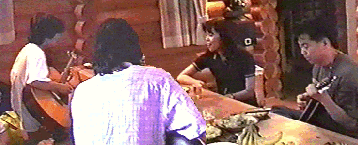 居間の隅に置かれていた、一行の持ち込んだギターケースを見て山田が尋ねる。
