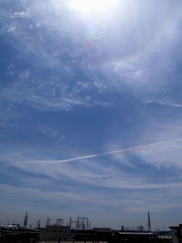 11:00ころ飛虹輝雲 (飛行機雲の 彩雲)