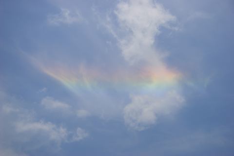 やがて雲が流れるに連れて虹色の帯が西側へ伸びて見事な
