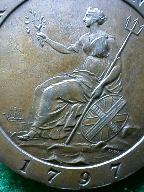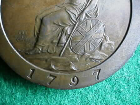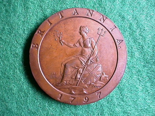 Great Britain George V Proof Penny 1797(late Soho). struck in bronzed 英国 ジョージ三世 ペニー試鋳貨 1797年 1797年のペニー試鋳銅貨 PreviousCoins | Main Index | Next Coins