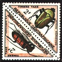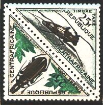 The small landlocked country located in the center in Africa called the Central Africa Republic issued 8 kinds butterfly stamps in 1960-61. In 1962 this country issued 12 kinds of the triangular stamps which drew the longhorn beetle and the scarab beetle and which has a taste very much. It has the atmosphere of the stamp of France which is a suzerain, and I like the classical height of intaglio printing.