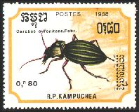 Seven kinds of stamps which drew the insect from Cambodia were issued in 1988.