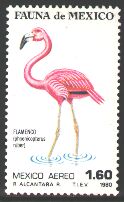 フラミンゴという名は、ラテン語の炎(flamma)や、スペインのフラメンコに由来すると言われています。いずれも鮮やかな体色からイメージされる言葉に関係しています。フラミンゴの大群が空を赤く染めて飛ぶ姿は圧巻です。この明るく鮮やかな体色は、フラミンゴの餌である塩水湖に生える藻類に、カロチン系の赤い色素が含まれているために生まれます。繁殖期には、この鮮やかな体色を持つことが相手を得られるかどうかの決め手になっています。エアーコフラミンゴは化石がオーストラリアのエアー湖で発見された23億年から38億年前の漸新世の動物で体長は150cm、オオフラミンゴとコガタフラミンゴは現在の動物で、各々体長が130cm、80cm程度です。