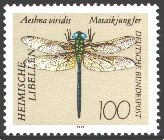 The stamp describing four kinds of typical dragonflies of Europe was issued from Unified Germany in 1991.