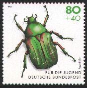 Five kinds of youth welfare stamps describing the typical beetle of Europe were issued in 1993.