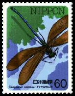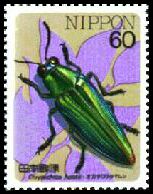 Insect Stamp of JapanThe number of the insect stamps in a normal stamp is 13 from 75 yen Great Purple Butterfly of the 1956 issue to 30 yen Small Copper of the 1997 issue. Great Purple Butterfly has appeared twice and Small White Butterfly has appeared twice and Orange Oakleaf Butterfly has appeared twice.