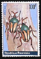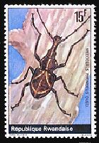 Insect Stamp of RwandaTutsi sl. of a nomad influenced Hutu of indigenous people in the 15th century, and Rwanda built a kingdom and it passed through the part neighbor of the German East Africa, the Belgian rule in the end of the 19th century and became independent as a republic in 1962. Hutu rule continued after independence, and a slaughter case for Tutsi occurred. The Tutsi power that fled into Uganda after 1994 started a counterattack and held the whole land, and an aspect changed completely, and Hutu escaped in Zaire, Tanzania. A Hutu slaughter case in a refugee camp happens, too.