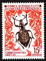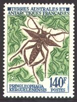 Insect Stamp of the French Southern and Antarctic LandsTerritory of the French Southern and Antarctic Lands is comprised of Klose archipelago where Amsterdam island and sun Paul Island, Adelie land of the Antarctic Continent and the university land located in the southern part of Indian Ocean in one of the overseas territories of France are near, Kerguelen archipelago, French possession Scattered Islands in the Indian Ocean.