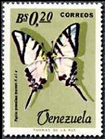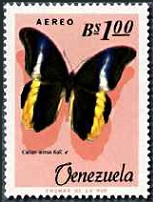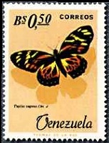 その南米のベネズエラから昆虫切手としては比較的初期の発行になる1966年に6種の蝶切手が発行されました。1968年に6種の昆虫切手が発行されました。