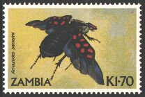 Insect Stamp of ZambiaInhabitants settled in Zambia after the tenth century, and a monarch country did the rise and fall, and British explorer Livingstone set foot in 1850's. It was had jurisdiction as "Northern Rhodesia" in 1889 by British South Africa company and became a British protectorate after 1911. Independence movement became active after 1960's began and became independent as a republic in 1964.@