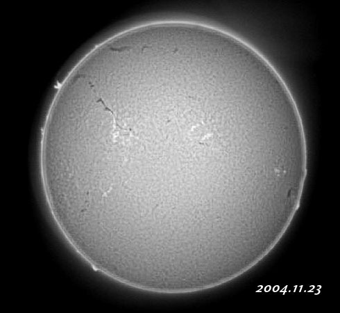 黒点群、プロミネンス、ダークフィラメントが見られます。