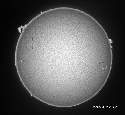 2004年12月17日の太陽太陽表面は、黒点群、ダークフィラメントが見られます。710黒点群が復活してます。プロミネンスは、依然活発です。アーチ状に吹き上がっています。