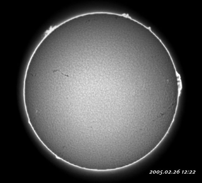 2005年2月26日の太陽望遠鏡:Coronado P.S.T.カメラ:CCD(WAT-100N)プロミネンス、ダークフィラメントが見られます。表面は穏やかです。